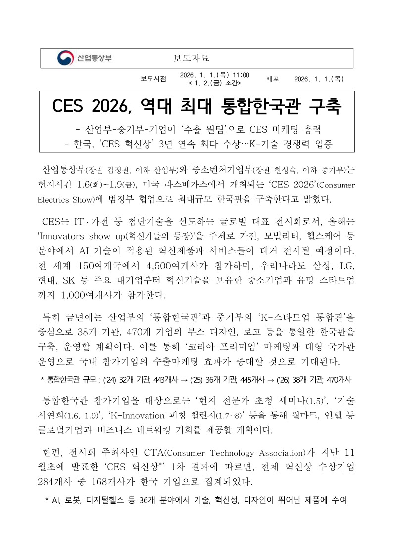 01012조간무역진흥과, CES 2026 역대 최대 통합한국관 구축.pdf (415.3K)