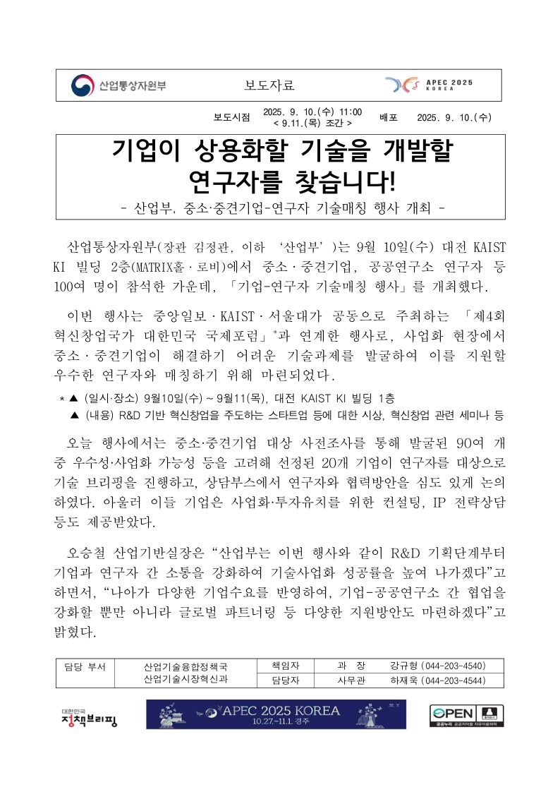 기업이 상용화할 기술을 개발할 연구자를 찾습니다!